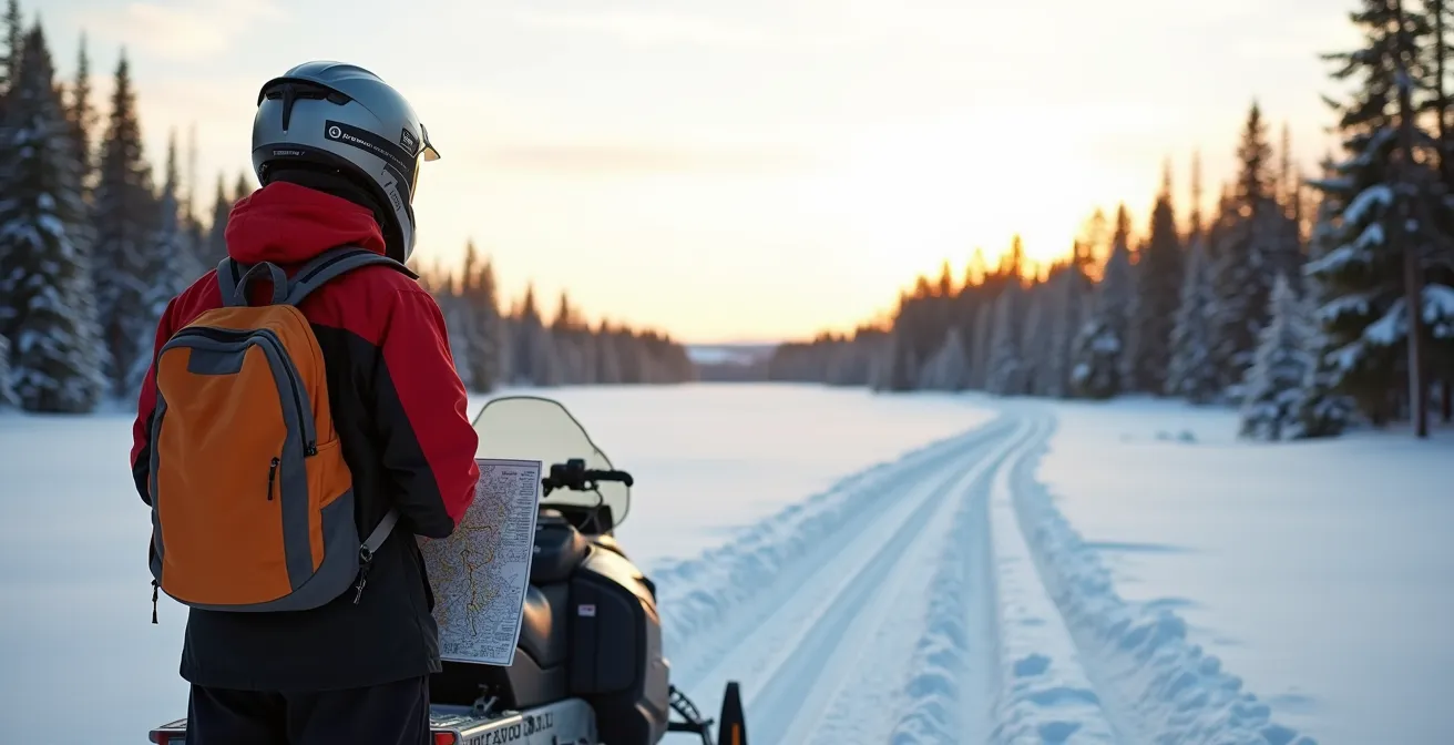 Une planification rigoureuse est votre seule assurance. Avant de partir, utilisez la carte interactive ou l’application iMotoneige pour repérer les relais-services et les stations-service sur votre itinéraire. Calculez les distances entre chaque point de ravitaillement et ajoutez systématiquement une marge de sécurité de 40% à votre consommation estimée. Dans les régions les plus isolées comme la Côte-Nord ou l’Abitibi, où les relais peuvent être distants de plus de 150 km, emporter un petit bidon d’essence de sécurité n’est pas une option, c’est une obligation.