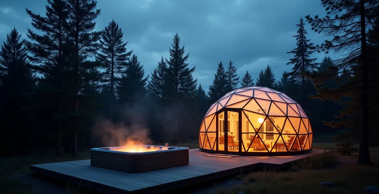 L’erreur commune est de croire que la forme de l’habitat – dôme, yourte ou micro-chalet – dicte le niveau de confort. Or, la question fondamentale n’est pas la structure, mais l’ingénierie invisible qui la soutient. Cet article propose une analyse comparative, avec l’œil exigeant d’un consultant hôtelier, pour décortiquer ce qui sépare le simple « camping amélioré » du glamping de luxe. Nous n’allons pas lister les plus belles vues, mais auditer les fiches techniques pour identifier les critères non négociables d’une salle de bain privée digne de ce nom et d’un confort absolu, peu importe la saison.